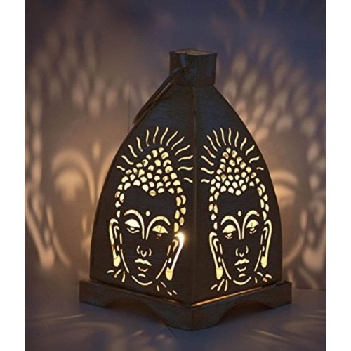 Light gets filtered through the buddha shape which is carved on this metallic Tea Light Holder, With its delicately crafted Buddha pattern, this lantern is sure to add charm & style to any living space