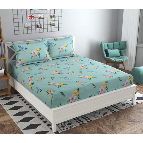 Material - It is Polycotton bedding set , sheet gives you cotton feel . These king size bed sheets with pillow covers elastic fitted saves your daily elastic bedsheet king sizeme in tucking the bedsheet .
