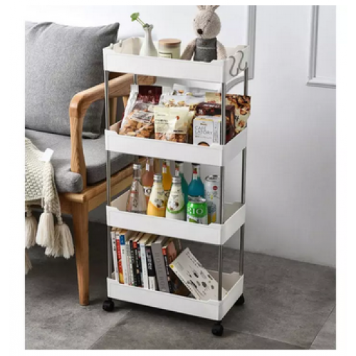 Multi Functional Storage Rack Trolley 3 Levels and 4 Levels with Wheel Caster 4 Hooks Included 2 Styles Available for Space Saving Material: ABS Plastic and SS pipesStainless steel rods provide stable support, keeping the rack sturdy and durable.