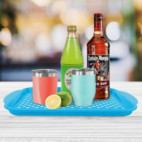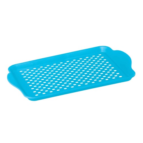 The EZ-Grip handles and high wall construction make this ideal as a serving tray. The lightweight and durable design will make this your go-to serving tray. Great on the deck or in the backyard as a dinner tray or simply on the bar chart for easily transportable cocktail ingredients. Use as serving platters and trays for parties or tv trays for eating on a casual night in. Serving is not its only function! The rectangular 17.5" x 11.5" size of the tray is perfect to keep cleaning products organized, while it protects cabinetry or under the kitchen sink. Keep water and food droppings off the floor when used under pet bowls or keep floors clean when used as a kickoff mat for dirty shoes and sneakers at the door. The eye-catching color options include white, gray, blush, green, and aqua.