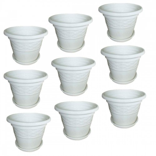 Set of 9 Designer plastic garden planter pots with tray