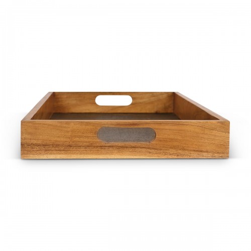 Enhance your kitchen & dining experience with the Zade Decorative Tray, a perfect blend of style & functionality. Crafted from premium Acacia wood with a natural finish, this handmade wooden tray features a durable cast aluminum base with an antique brass finish. Its Wooden handles provide a firm grip, making it ideal for serving tea, coffee, snacks, or even as a statement decor piece.