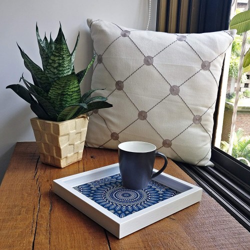 FIBRE Tray with MDF & Acrylic insert with digital print. FELT BASE at the bottom of the Tray, to protect your furniture. WIDE SIDES for easy and comfortable grip. SMOOTH FINISH in texture making the trays comfortable in the hands. SIZE: 9" x 9" (22.9 x 22.9 cms.). Wall Height 1" (2.54 cms.). BORDER Thickness 14 mm. SERVE breakfast in bed in style. PERFECT for keeping remotes handy and items tidy and neat. ORGANISER for your Dressing Table. GREAT For Serving Drinks, snacks or presenting Hors D'oeuvres. TOUCH of colour and elegance for your home and office décor.