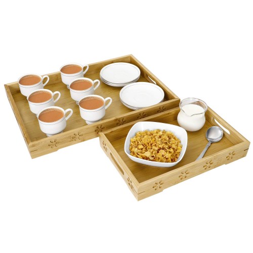 Works great as a large serving trays for food, breakfast tray for bed, serving platter, bed tray, dinner tray, tea tray for serving, snacks. Great for Multi family events, holiday,office use, entryway tray, outdoor use, versatile use, gifts, serving guests.