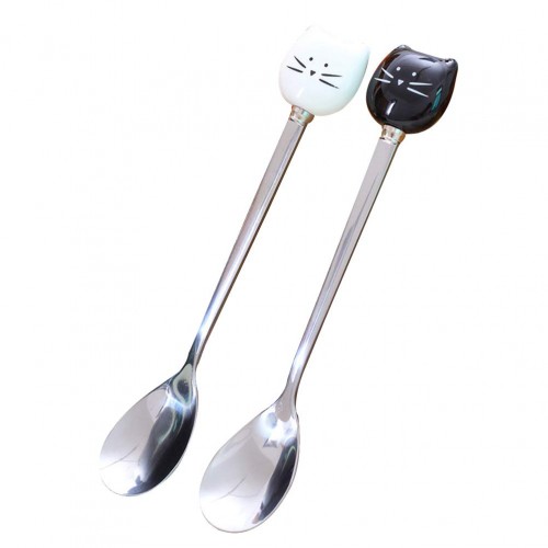 Are you looking for a spoon for serving fruit or dessert? This ceramic and stainless steel spoon can be applied to many areas, you can use it as a coffee spoon, a tea spoon, or stirring spoon. With cute cartoon kitty pattern design in the handle. If you are a cat lover, is it attracting you?